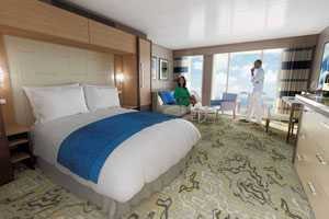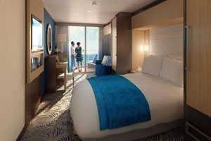 Unicità del balcone abitabile consente un esperienza unica esclusivamente alla vacanza in crociera, totalemente fronte mare. |